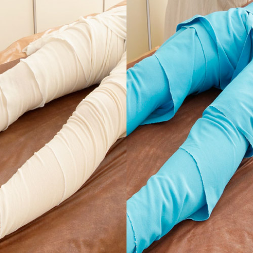 バンテージは、専用バンテージを体に巻き、リンパ液などの環流を促進する施術です。